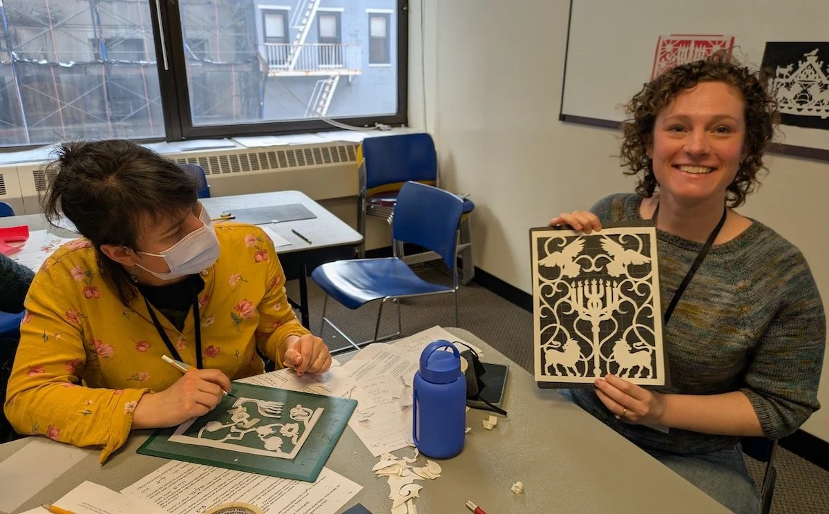 I teach the ancient tradition of Jewish papercutting through engaging workshops both online and in-person. As a NYFA Folk Arts Fellow and recognized master Cut-Paper artist, I share techniques that blend traditional iconography with contemporary expression.